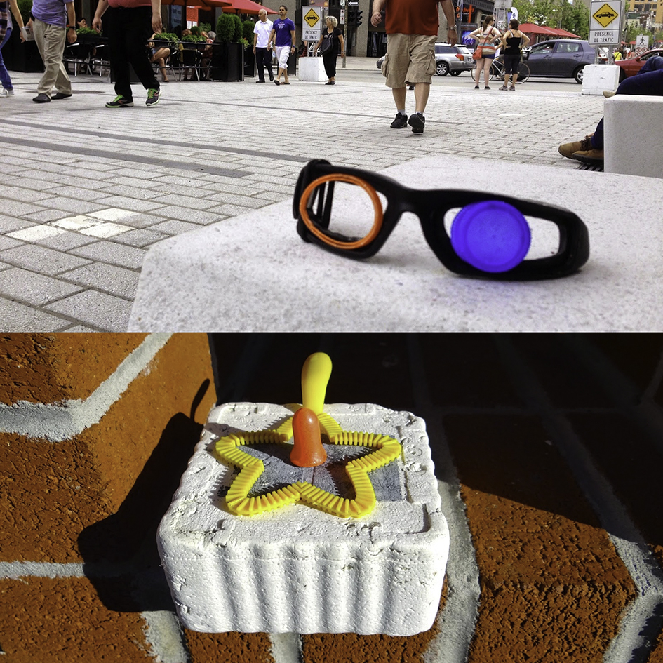 Durant ces marches-errances, Réjean Morin ramasse des petits résidus urbains, puis les regroupe et les transfère dans un autre quartier. Ces petites interventions anonymes et éphémères passent souvent inaperçues … Ce sont des gestes discrets à partir de résidus minimes et silencieux.