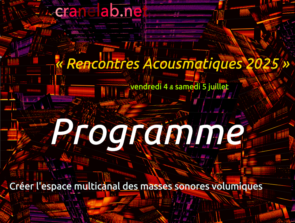 Publié parJean VOGUETPublié dansacousmatique, arts sonores, congrès, contributions, débats, musique, volumiphonie, volumiphonyÉtiquettes :2025, Amir TEYMURI, Bernard FRANÇOIS, cranelab, Gilles MALATRAY, Isabelle de MULLENHEIM, Jean VOGUET, Manolis EKMEKTSOGLOU, Yuko KATORI